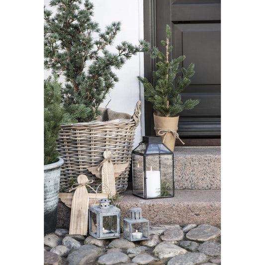 Lanterne med glas i antik brun - stor