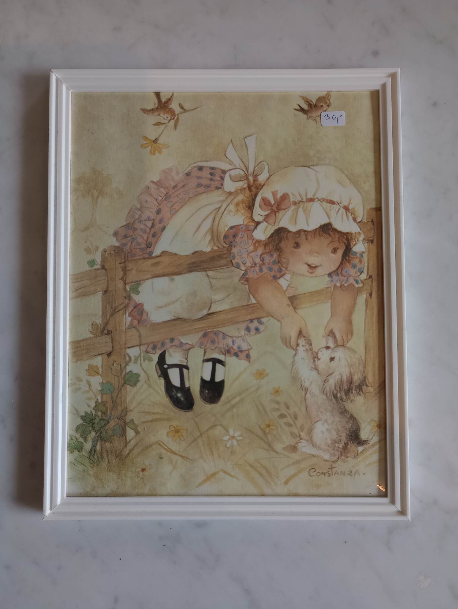 Billede i ramme: Pige med hund