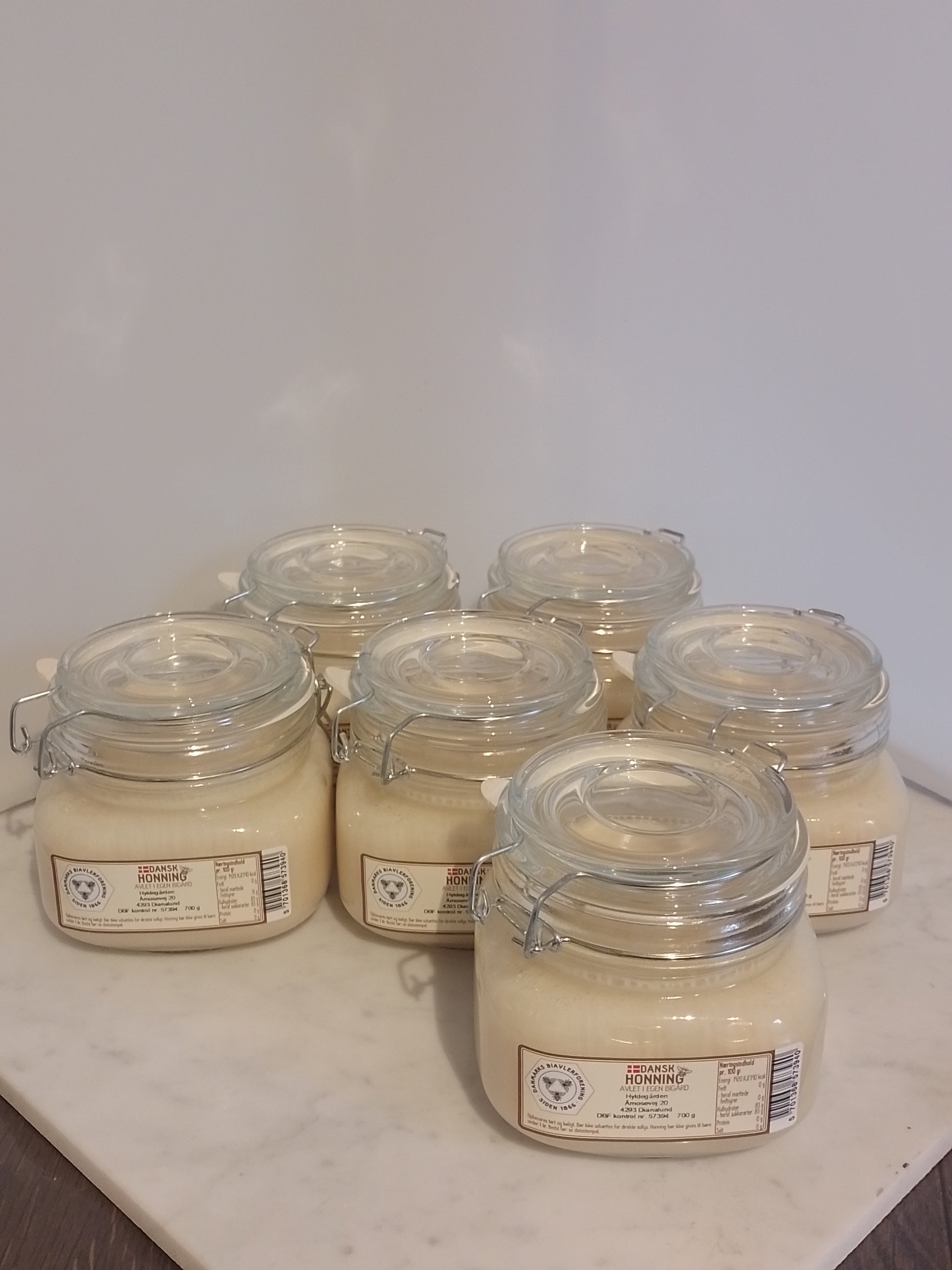 Koldslynget, rørt og tappet af Hyldegårdens Biavl for Kløverbakken Gårdbutik