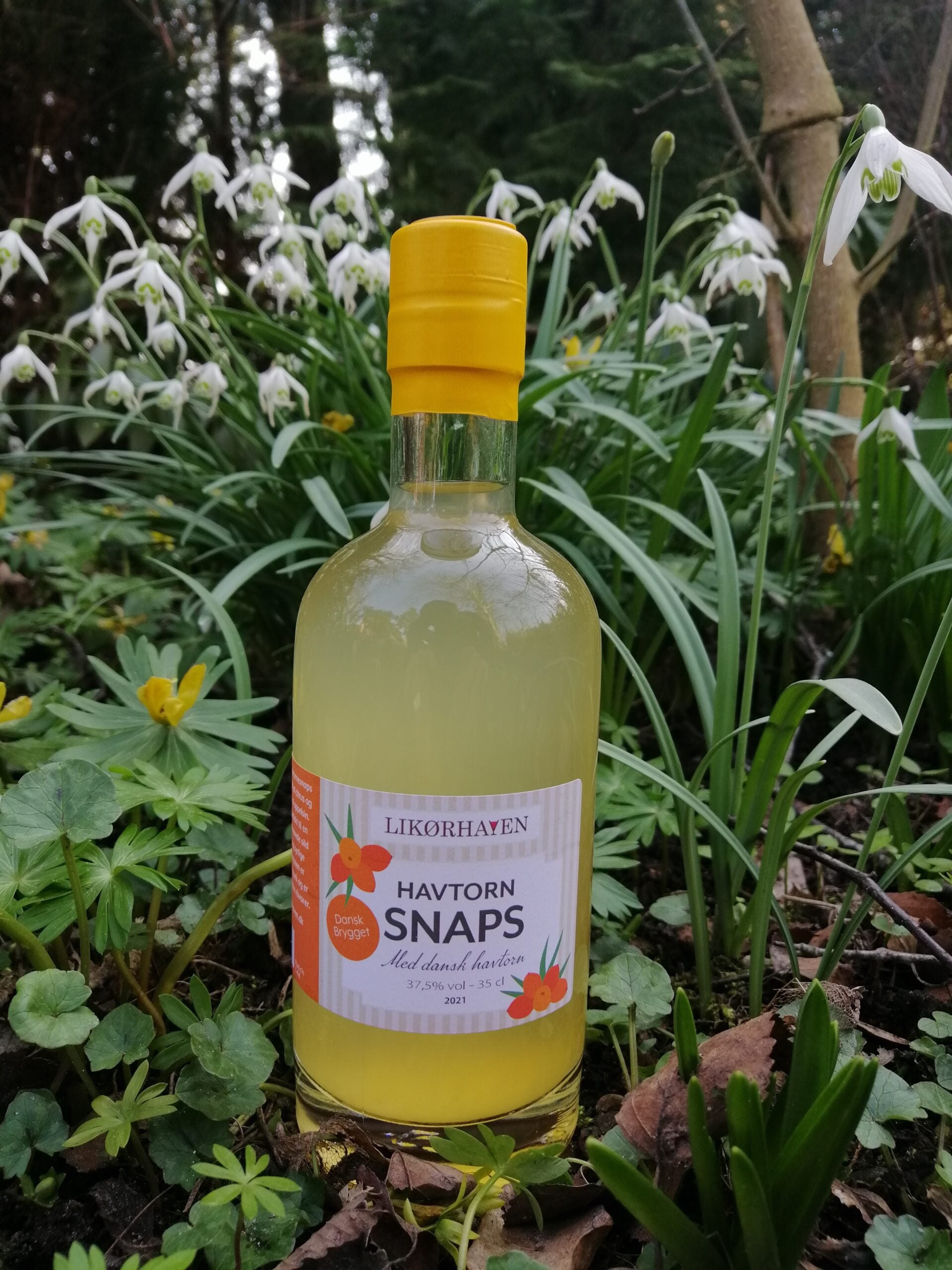 Likørhavens Havtorn snaps er lavet på friske modne havtorn der har trukket i neutral hvede sprit i op til et halvt år, dette giver en smuk gylden farve og en fantastisk smag af citrus.