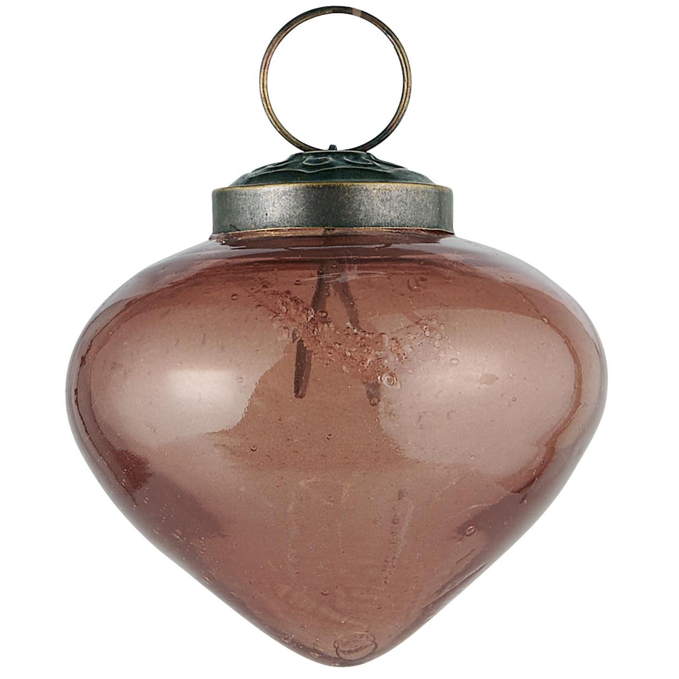 Fin løgformet julekugle i pebbled glas i farven fadded rose.