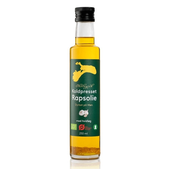Rapsolien er skånsomt presset ved lav temperatur. En fin balanceret smag af hvidløg, giver olien mange anvendelsesmuligheder. Denne skønne mønske rapsolie er helt uden tilsætningsstoffer og med et højt indhold af enkeltumættede fedtsyrer.