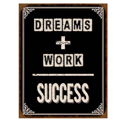 Metalskilt Dreams + work = succes
