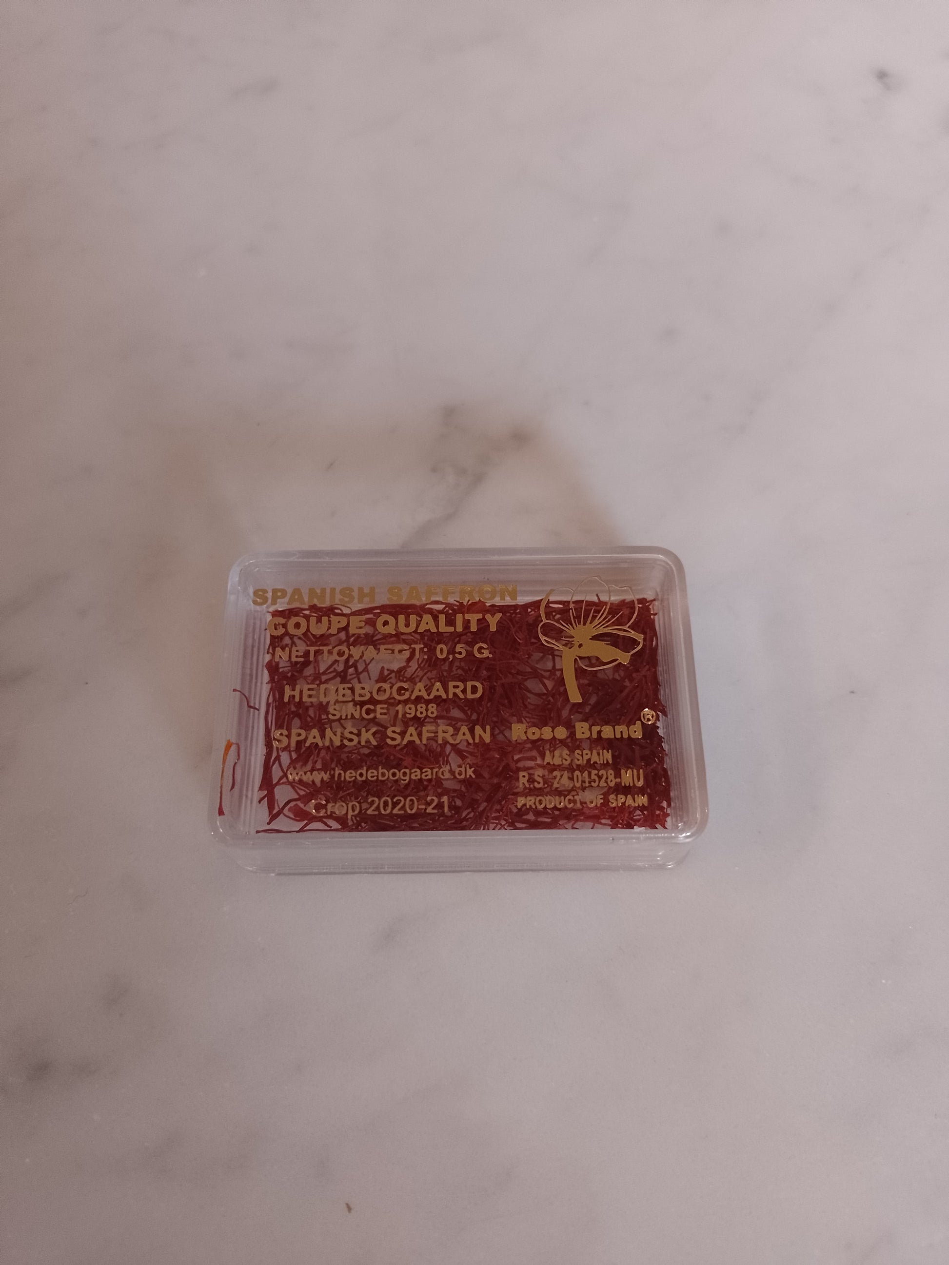 Til 2 personer bruges hvad der svarer til to fingerspidser. Tilsæt altid safranen de sidste 3-4 min. af rettens tilberedningstid, for at bevare smagen bedst muligt.